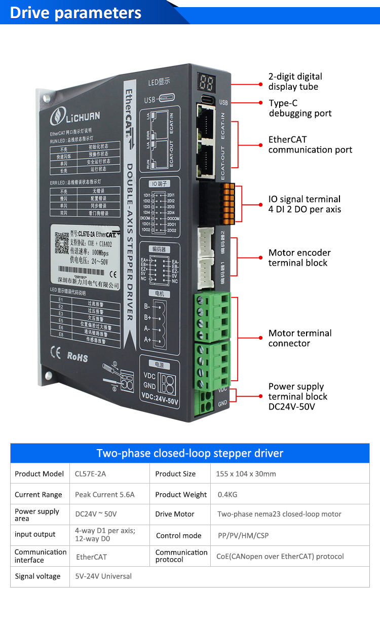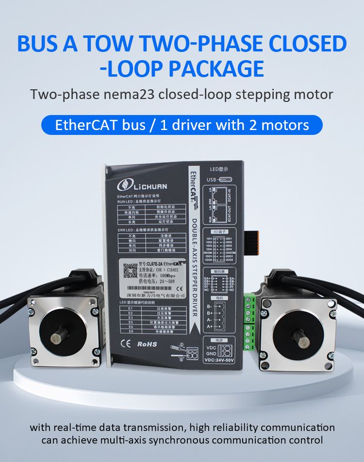 EtherCAT 2 เฟส Nema24 4 แกน DC Closed Loop Stepper Motor ชุดไดร์เวอร์ผลิตภัณฑ์ใหม่ EtherCAT 2 เฟส Nema23 ชุดไดรเวอร์สเต็ปเปอร์มอเตอร์แบบ Closed Loop DC 2 แกนผลิตในจีนที่มี CE/ROHS จาก LICHUAN® โรงงานของเราเป็นผู้ผลิตชุดไดรเวอร์มอเตอร์สเต็ปมอเตอร์แบบวงปิด EtherCAT 2Phase Nema23 2 แกน DC ที่มีชื่อเสียงและซัพพลายเออร์ในประเทศจีน ผลิตภัณฑ์ของเรามีคุณภาพสูง/ทนทาน/มีเสถียรภาพและราคาถูก และเราให้บริการที่กำหนดเอง