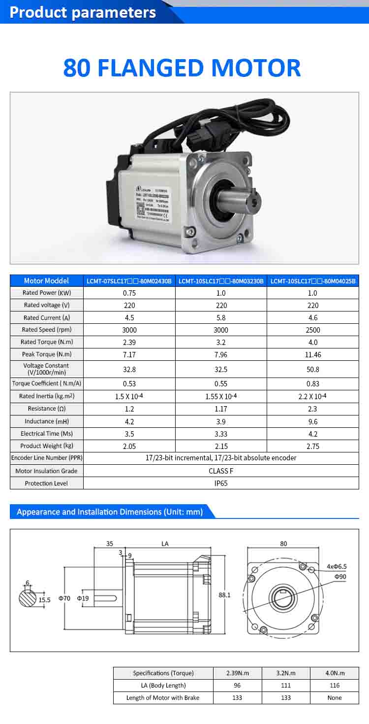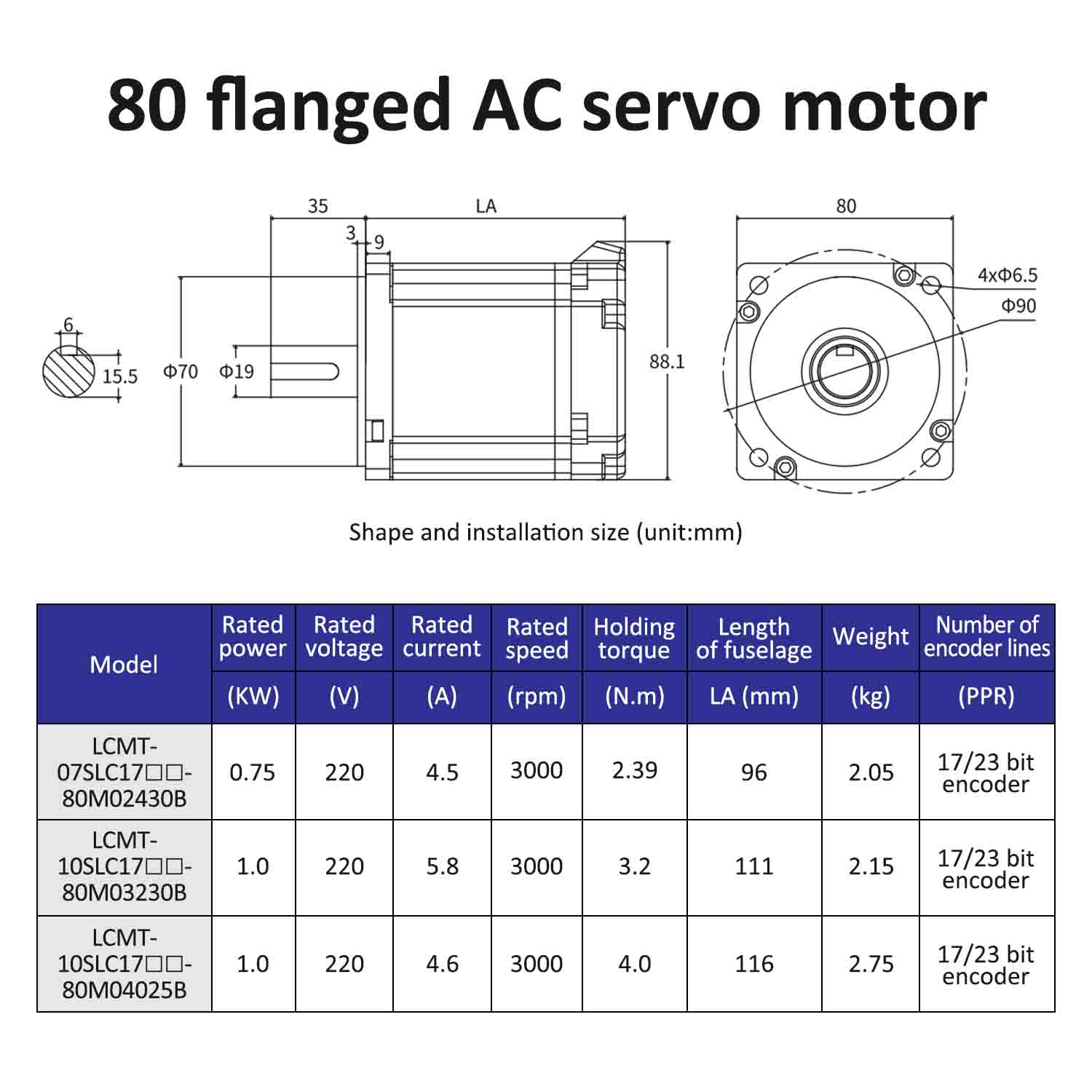 | มอเตอร์โมเดล | LCMT-07SLC17-80M02430B | LCMT-10SLC17-80M03230B | LCMT-10SLC17-80M04025B |