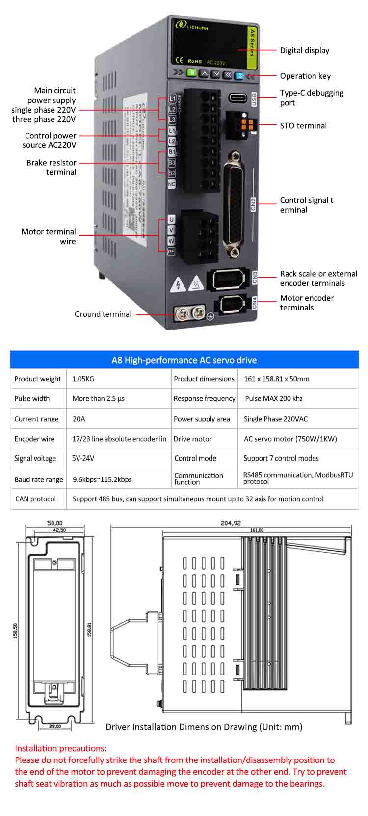 ขับเคลื่อนโดยข้อเสนอแนะ ABZ และอัลกอริธึมเซอร์โว A8Lichuan A8 ชุดไดรเวอร์เซอร์โวมอเตอร์ AC STO ABZ ความแม่นยำสูงบรรลุตำแหน่งที่มั่นคงและแม่นยำเป็นพิเศษ