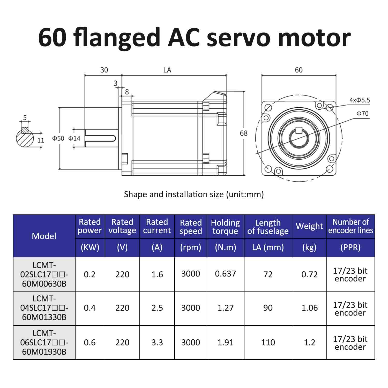 | มอเตอร์โมเดล | LCMT-02SLC17-60M00630B | LCMT-04SLC17-60M01330B | LCMT-06SLC17-60M01930B |