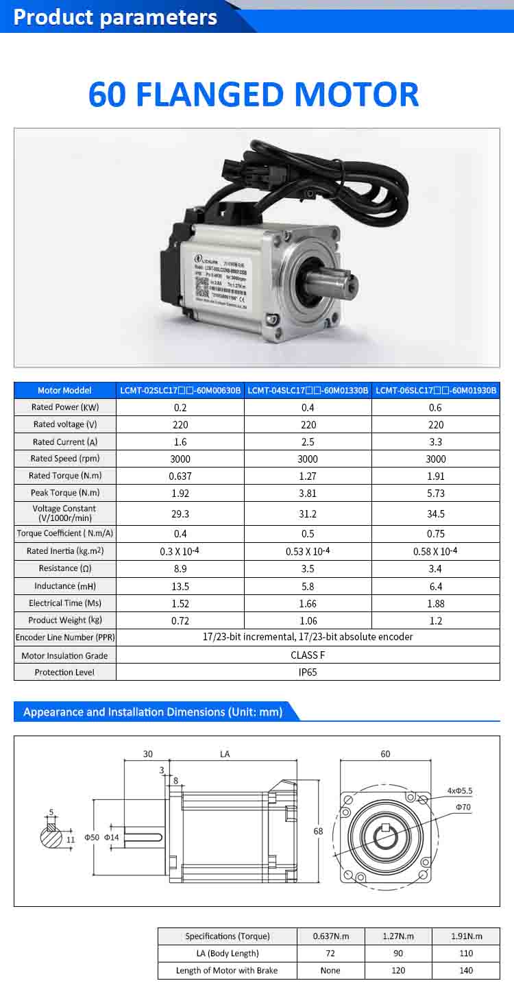 | มอเตอร์โมเดล | LCMT-02SLC17-60M00630B | LCMT-04SLC17-60M01330B | LCMT-06SLC17-60M01930B |