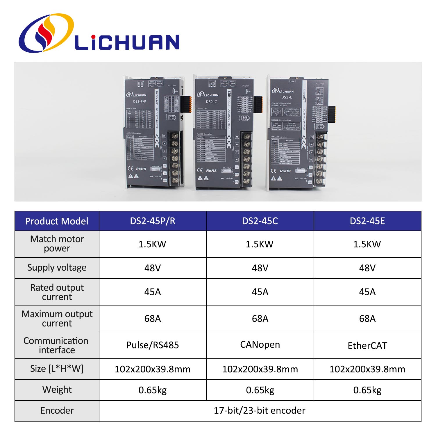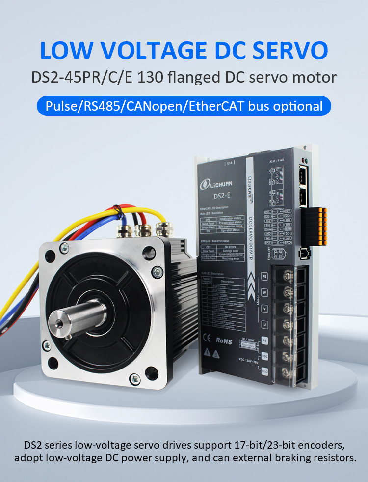 EtherCAT 2 เฟส Nema24 4 แกน DC Closed Loop Stepper Motor ชุดไดร์เวอร์ผลิตภัณฑ์ใหม่ Pulse/RS485/CANopen/EtherCAT 130 FLANGED 1.5KW/1500W 17/23-Bit Increamental/Absolute Encoder Low Voltage DC Servo Motor Drivers Kit made in China with CE/ROHS from LICHUAN®. โรงงานของเราเป็นผู้ผลิตชุดไดรเวอร์เซอร์โวมอเตอร์ DC แรงดันต่ำ Pulse / RS485 / CANopen / EtherCAT 130 FLANGED 1.5KW / 1500W ในประเทศจีน ผลิตภัณฑ์ของเรามีคุณภาพสูง/ทนทาน/มีเสถียรภาพและราคาถูก และเราให้บริการที่กำหนดเอง